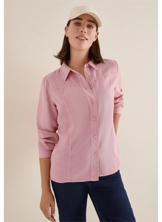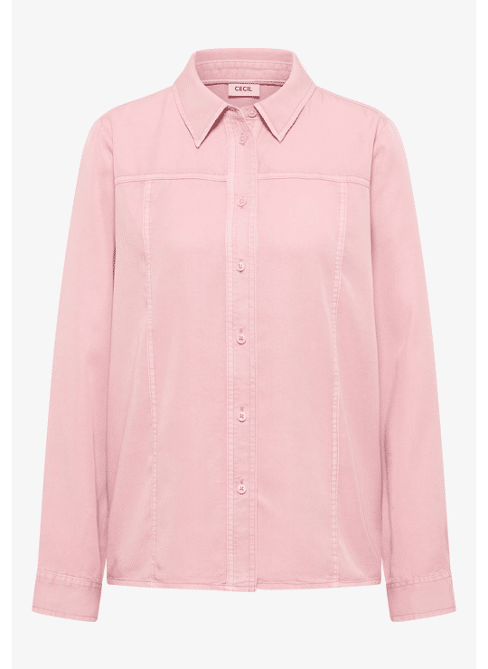 Deze damesblouse van CECIL maakt indruk met zijn cleane look en zachte lyocell-stof. De overhemdkraag, doorlopende knoopsluiting en mouwen met manchetten en knopen geven de blouse een klassiek silhouet. Een stijlvolle allrounder voor je favoriete outfits.