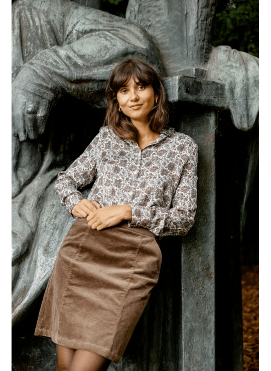 Deze damesblouse met knoopsluiting heeft een ontspannen pasvorm, lange mouwen en een klassieke kraag. Comfortabel en stijlvol voor elke gelegenheid en eenvoudig te combineren met verschillende outfits.