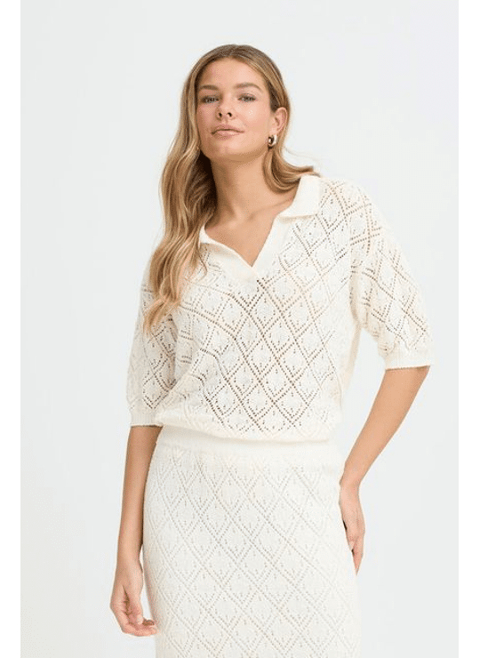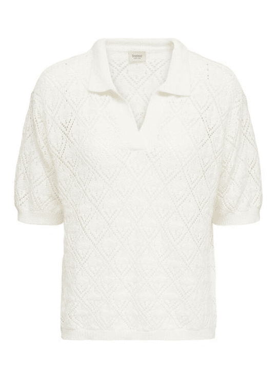 Gebreid poloshirt met een opvallend ruitpatroon, open kraag, korte, losse mouwen en een recht model voor een moderne stijl.