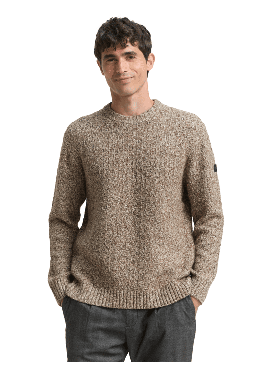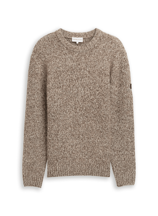 Getextureerde trui in gemêleerde look met ronde halslijn en logobadge op de bovenarm.