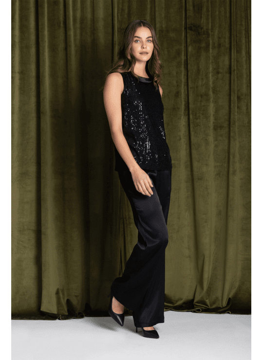 Avond top met pailletten van MORE & MORE met een satijnen col.