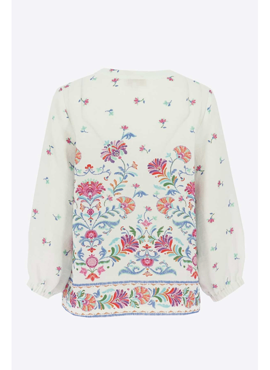 Blouse met print, open hals, gekruiste V-hals, 7/8 ballonmouwen, recht model