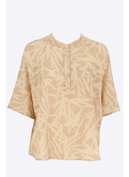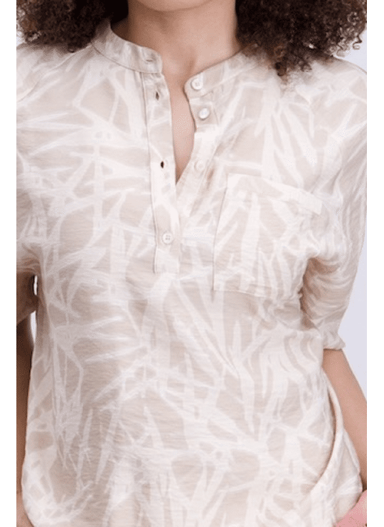 Blouse met print, ronde hals, recht oversized model met knoopsluiting, 2/4 mouwen, 1 borstzak