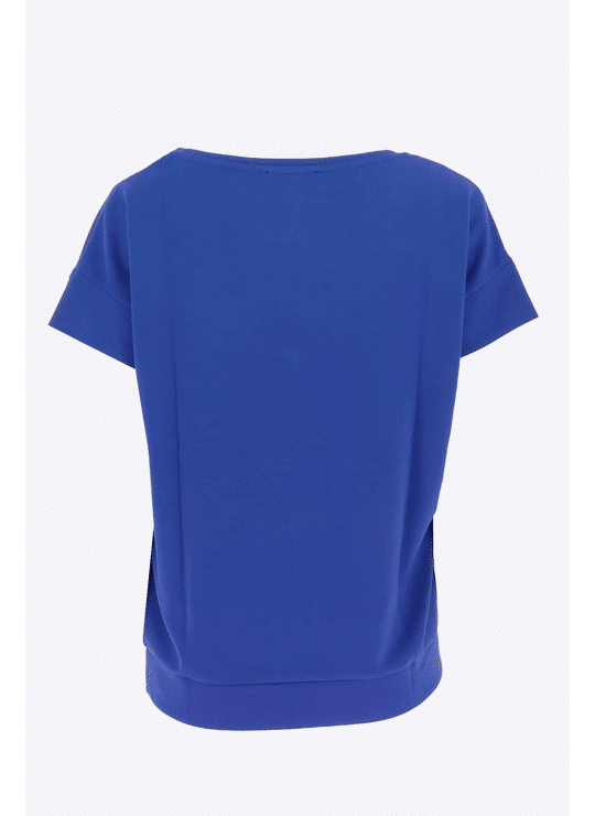 Licht effen sweatshirt/T-shirt met zoom aan de onderkant, korte mouw met brede rand en ronde hals