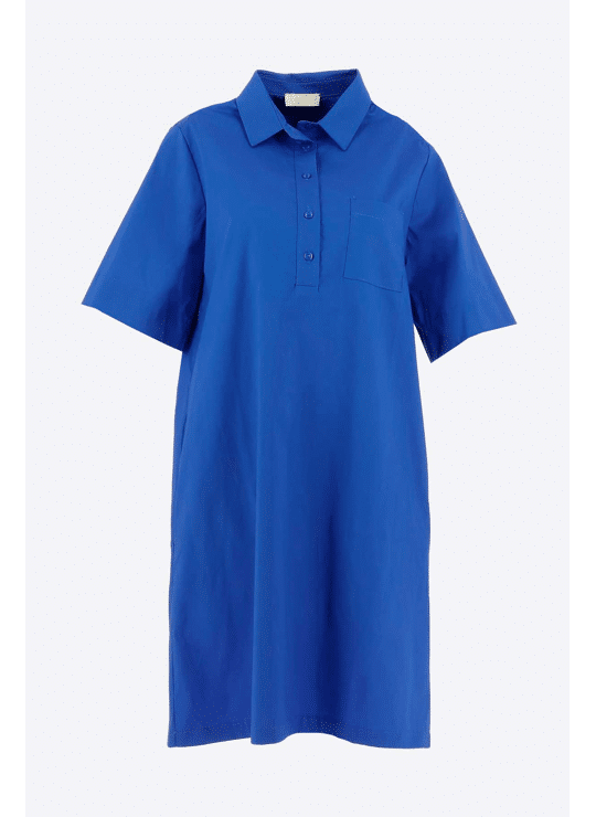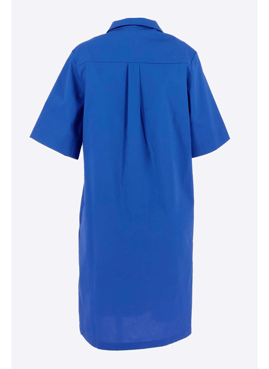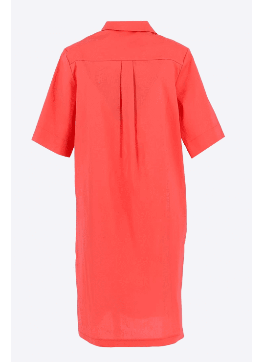 Effen overhemdjurk korte mouw met knoopsluiting, uitsnijdingen en plooien aan de achterkant