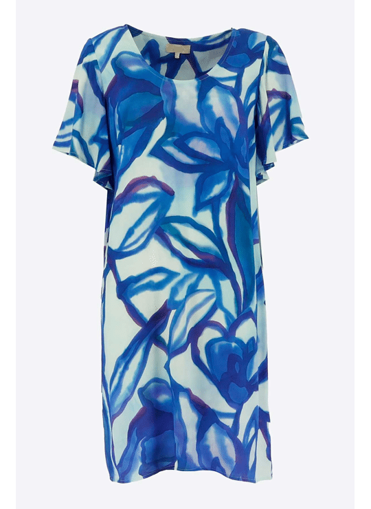 Halflange jurk met print, ronde hals, korte vleugelmouwen en ongevoerd