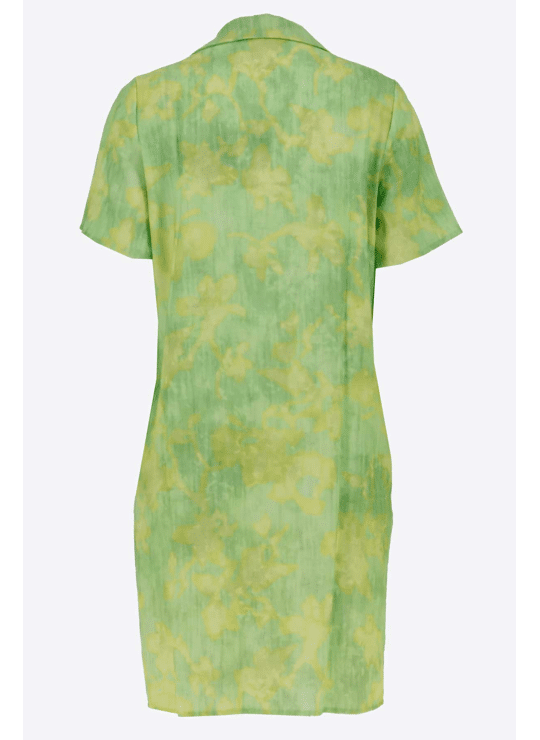 Halflange jurk met print, rechte mouwen, overhemdkraag, gekruiste V-hals, recht model met plooien aan de voorkant en zakken in de naad, ongevoerd