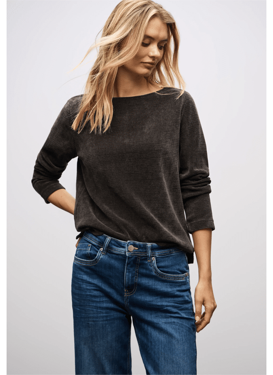 Dit damesshirt met lange mouwen van Street One voelt bijzonder zacht aan en heeft een vrouwelijke boothals. Een basic die gemakkelijk te combineren is - perfect voor ontspannen alledaagse looks.