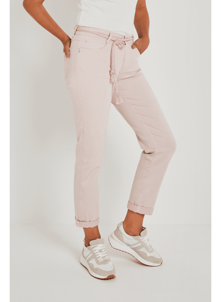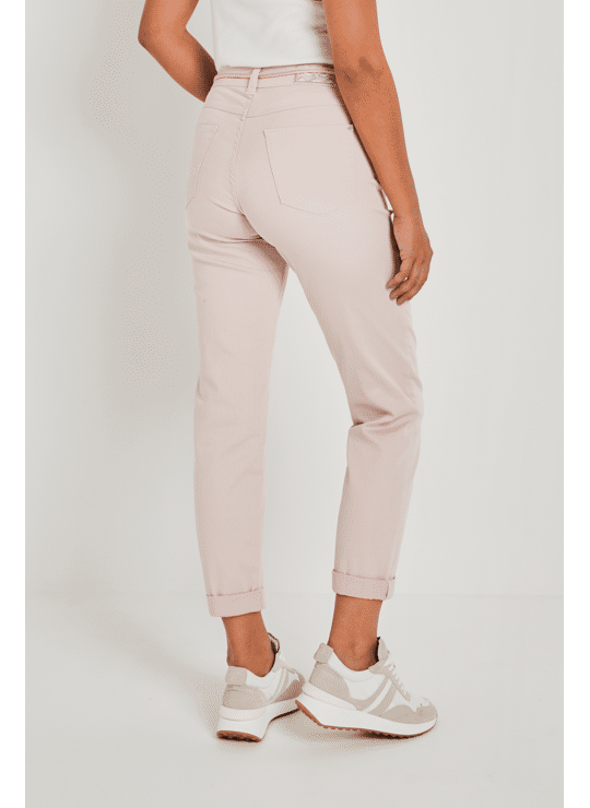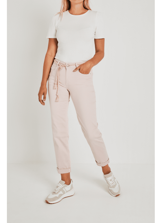 Details: Bobby heeft een decoratief gevlochten koord. Aan de onderkant van de broekspijp zit een dubbele omslag.