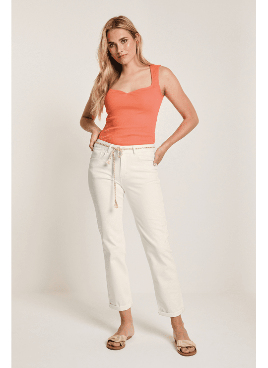 Bobby heeft een hoge taille met een losser vallende pasvorm over het hele been.