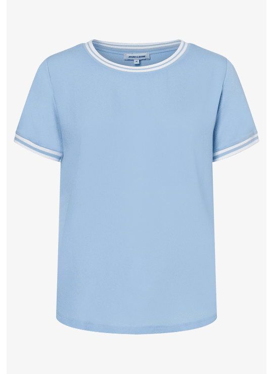 Deze vrouwelijke blouse van MORE & MORE, met zijn soepelvallende geweven voorkant en subtiele contrasterende bies, is een perfecte mix van blouse en T-shirt. Hij kan gecombineerd worden met een klassiek businesspak, maar staat ook prachtig met een casual jeans, sportieve chino's of een zwierige A-lijn rok.