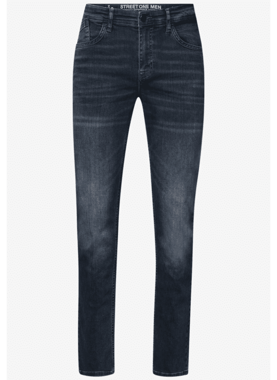 Deze jeans in Player stijl van Street One MEN heeft Slim Legs die dicht tegen het lichaam aanliggen en een klassieke donkerblauwe wassing. De Regular Fit zorgt voor een comfortabele pasvorm en de katoenmix met stretch garandeert bewegingsvrijheid. Ideaal voor moderne alledaagse looks.