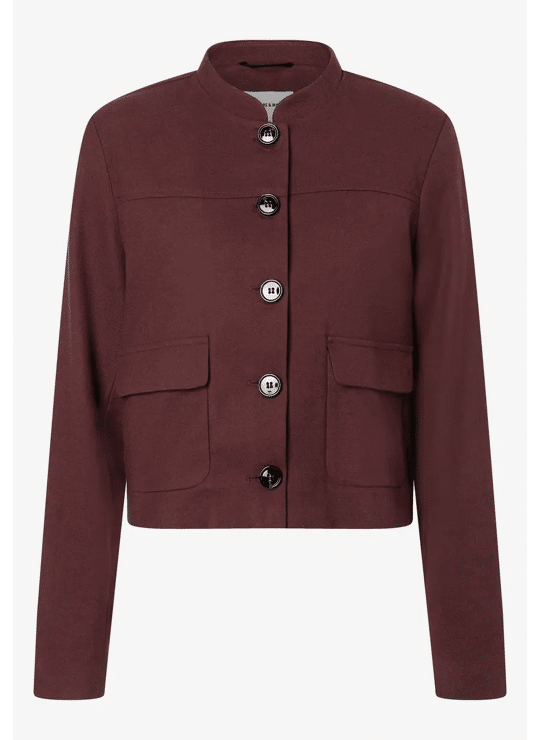 Dit roestbruine blazerjasje van MORE & MORE met een klein opstaand kraagje en opgestikte zakken is stijlvol en ongecompliceerd. Het geeft elke outfit een moderne twist en het strakke silhouet zorgt voor een cleane touch. Perfect om te combineren – zowel casual met een jeans als voor op kantoor met een bijpassende pantalon.