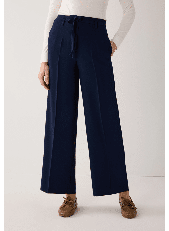 Deze wijde broek van MORE & MORE, met een smalle strikceintuur en persvouw, heeft een soepelvallende stof en zorgt voor een moderne, stijlvolle look. De broek is ideaal voor op kantoor, een dagje uit in de stad of een etentje en kan gecombineerd worden met een bijpassend blousejasje voor een trendy, sportieve tweedelige outfit.