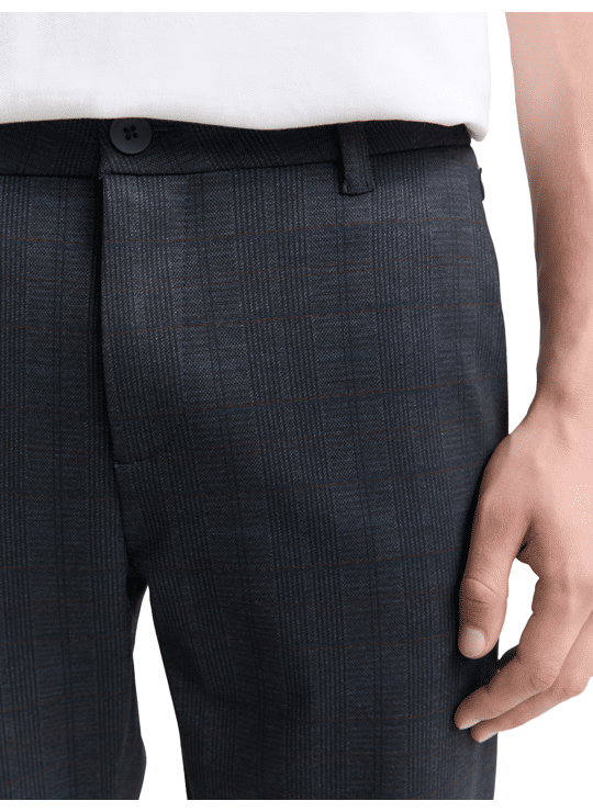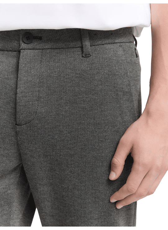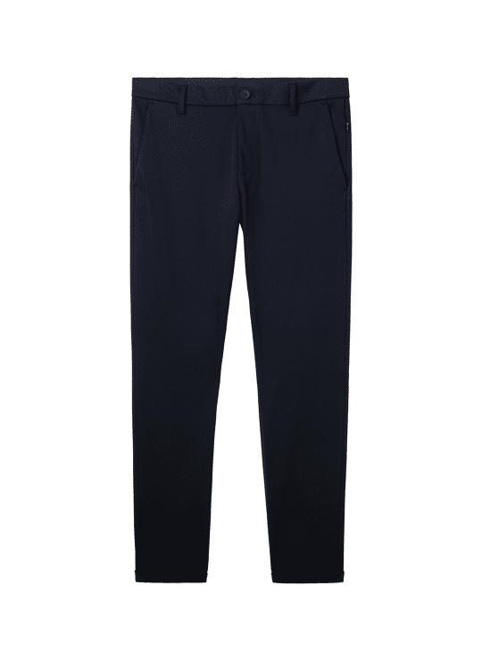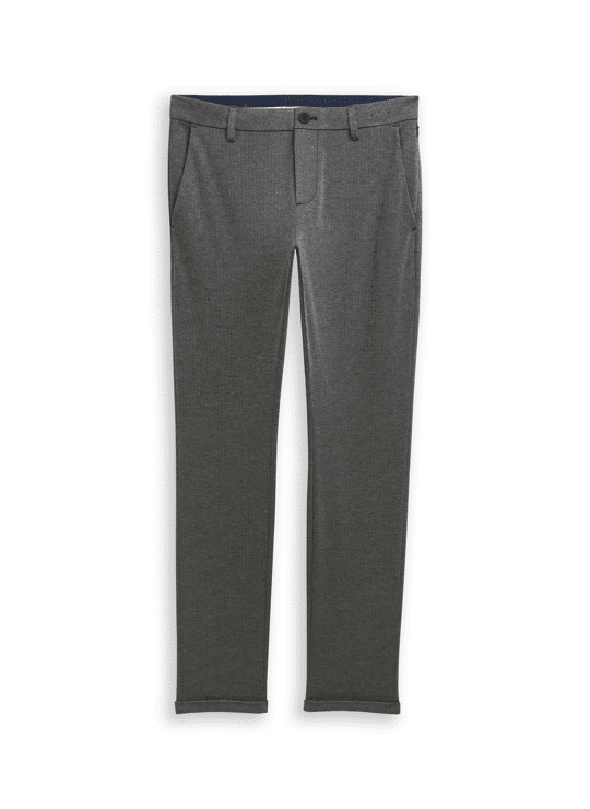 Klassieke chino met vaste, omgeslagen broekspijpen. Met steekzakken aan de voorkant en paspelzakken aan de achterkant. Gemaakt van een gestructureerde en zachte jersey piqué stof met stretch voor comfort en bewegingsvrijheid.