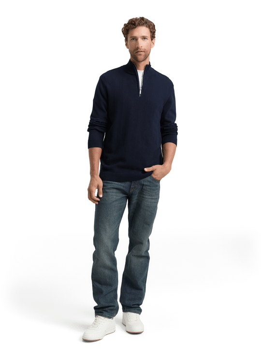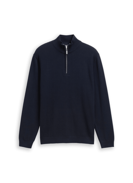 Getextureerde katoenen trui met een Troyer-kraag en halve ritssluiting. Met geribde manchetten en zoom.