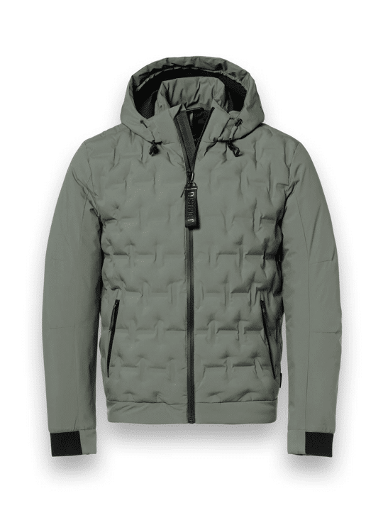 Dit korte bomberjack heeft een modern ontwerp. Gemaakt van hoogwaardig technisch polyester met een heatseal-quiltpatroon. Het jack is zeer comfortabel en licht van gewicht. Het heeft een afneembare capuchon en een moderne look.