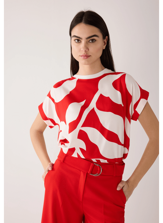 Deze moderne blouse van MORE & MORE, met een zijdezachte satijnen voorkant en een aangenaam zachte jersey achterkant, is een stijlvol alternatief voor een traditionele blouse en garandeert uitzonderlijk comfort. De zomerse, frisse rood-witte print maakt hem bovendien ontzettend veelzijdig.