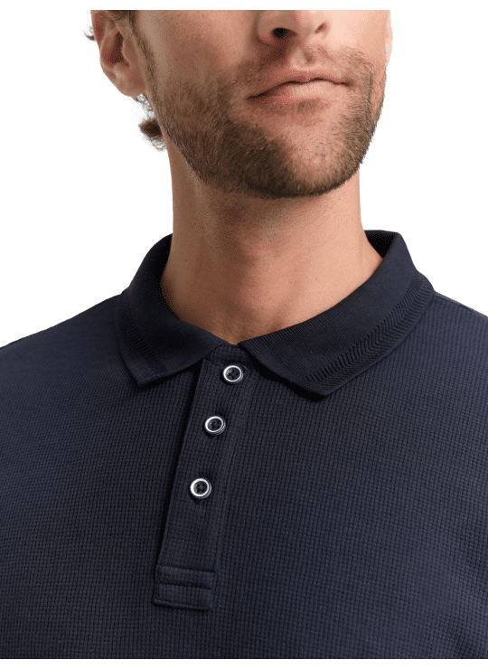 Polo met lange mouwen, gemaakt van een gestructureerde stof met een wafelstructuur.