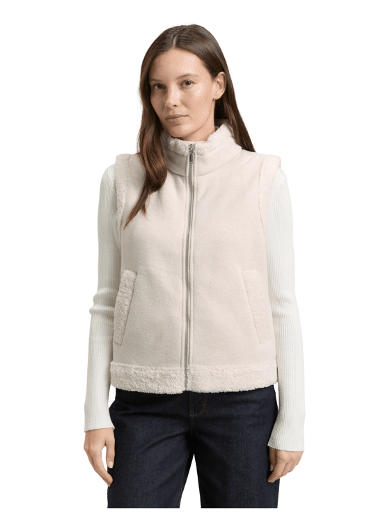Gevlekt vest met zachte teddybinnenvoering, opstaande kraag en zijzakken.